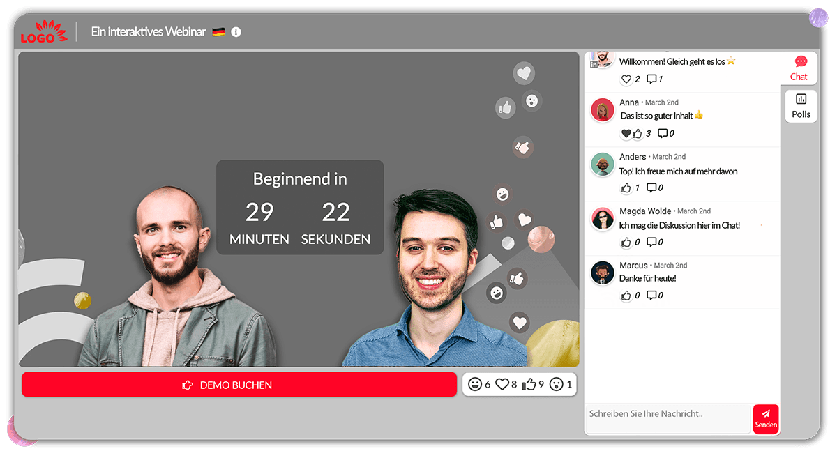 Speak the language of your webinar audience - from start to finish. Univid:s webinar platform allows you to localize to your German audience in one click.