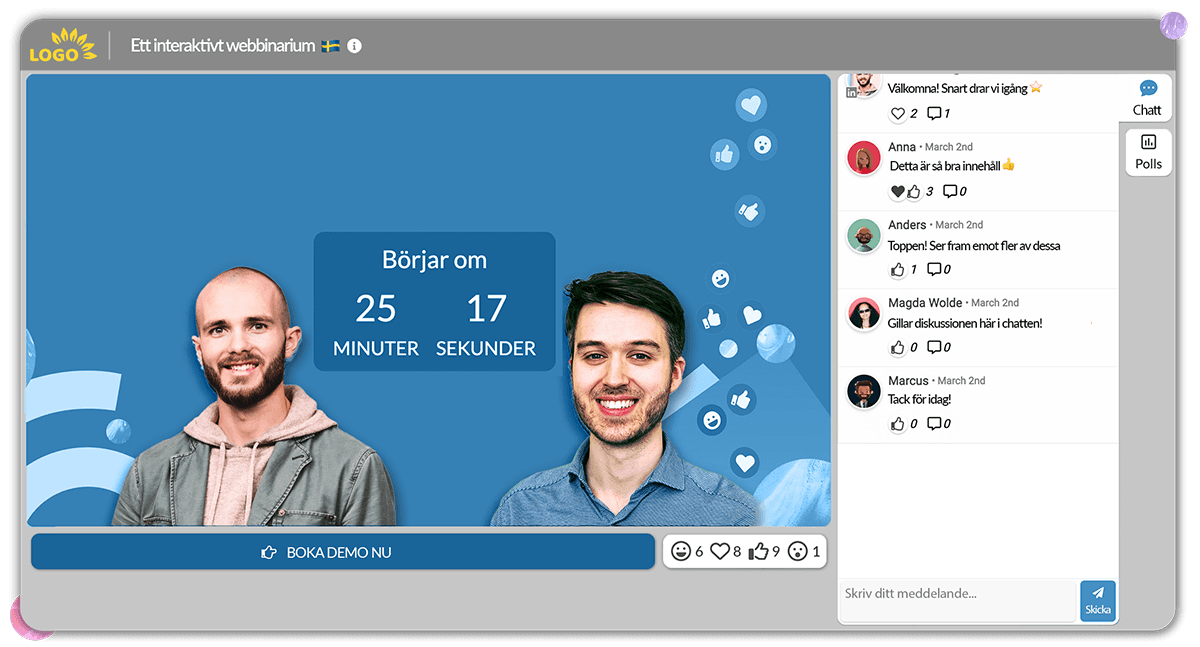 Speak the language of your webinar audience - from start to finish. Univid:s webinar platform allows you to localize to your Swedish audience in one click.