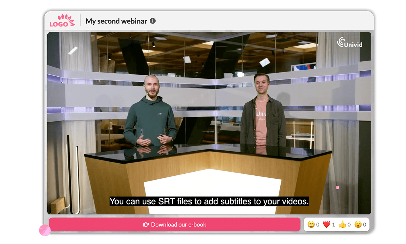 Upload .SRT or .VTT file with subitles to make your simulated live and on-demand webinars accessible. In style.
